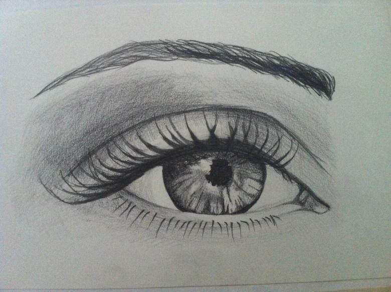 - Для начала необходимо научиться делать произвольный набросок глаза, не вдаваясь в нюансы и особенности строения. Для этого нужно запастись специальными простыми карандашами, подходящей твердости: В,3В, 8В, подготовить плотный лист бумаги и ластик.