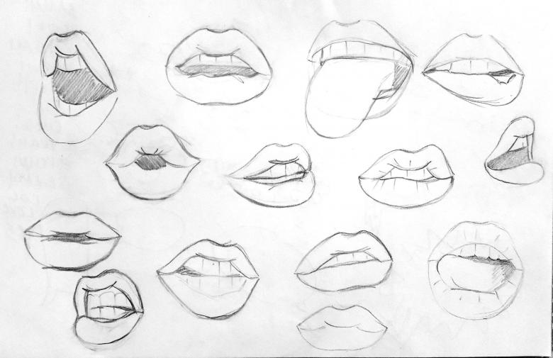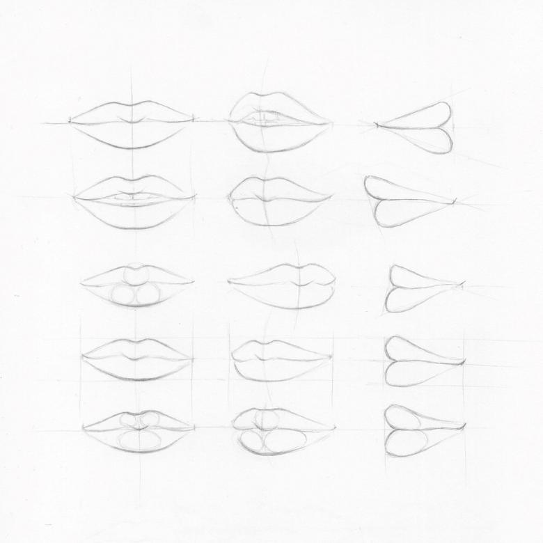 Вышеописанные способы были с изображением приоткрытых губ в анфас. Теперь можно взять уроки по рисованию их в других положениях. Пользователям интернета довольно легко найти различные образцы и выбрать подходящий вариант. Для каждого варианта нужно использовать: лист бумаги, простой карандаш, ластик и, в крайних случаях, точилку.
