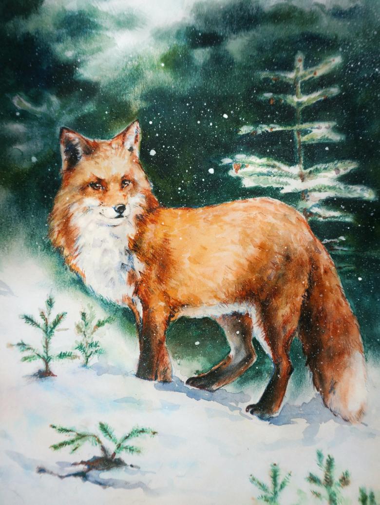 Рисование лисы красками