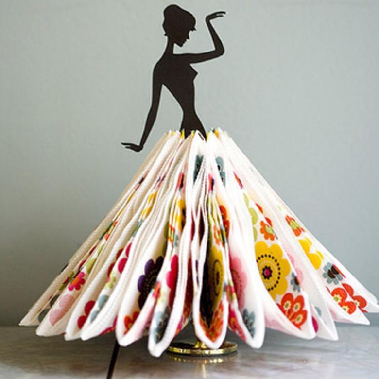 Для работы нам необходимо приготовить следующие материалы:- Однотонные бумажные салфетки. Лучше остановить выбор на многослойных вариантах, чтобы придать юбке максимальную форму и объем.